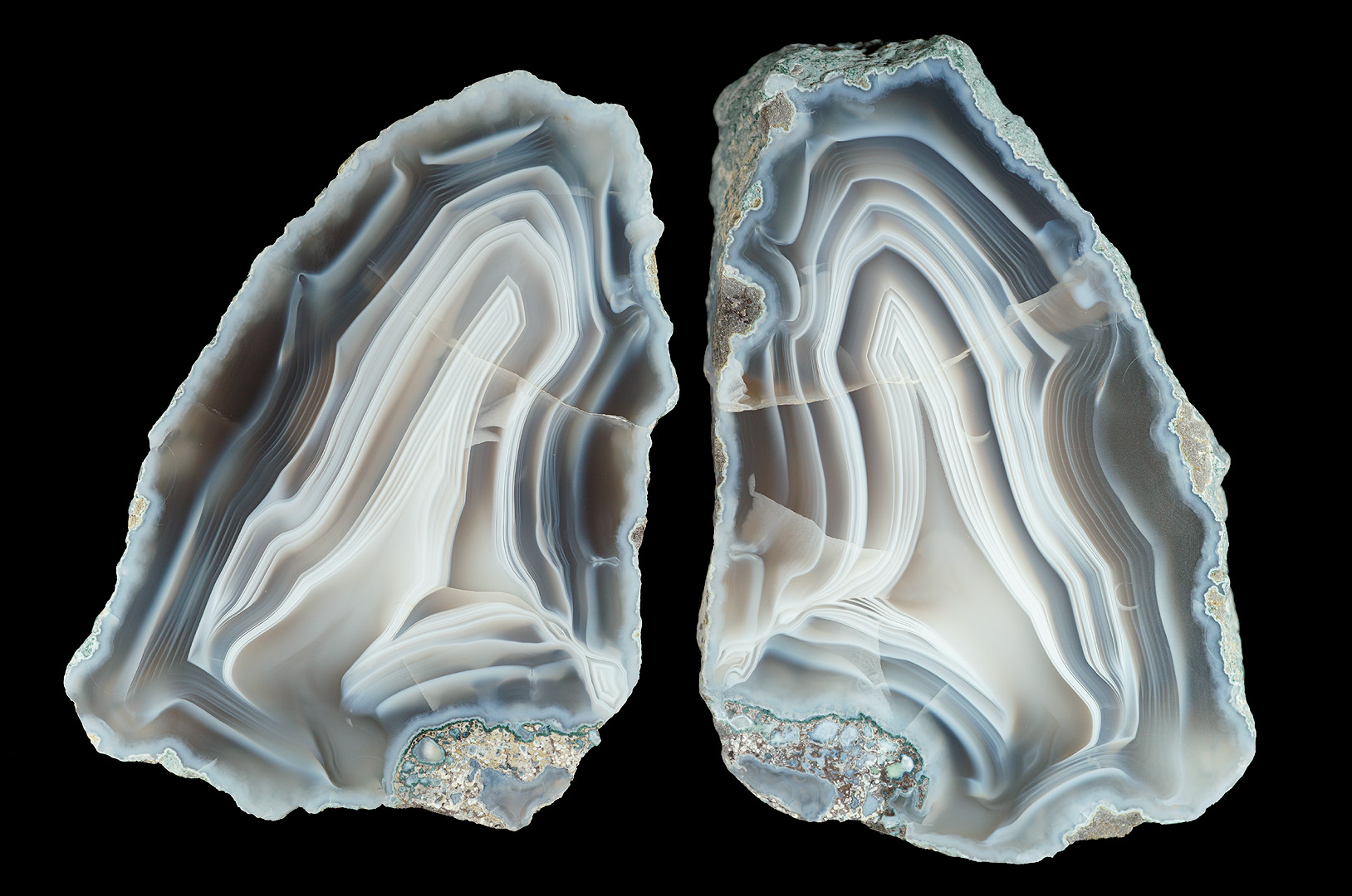 ハーフカットノジュール・ペア、断面平面研磨品。
