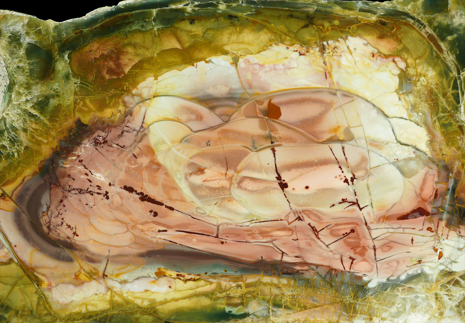 こちらは、ピンク、パステルイエロー、ベージュ、ダークブラウン、ブルーやグリーン、一つの石に驚くほど沢山の色が含まれています。