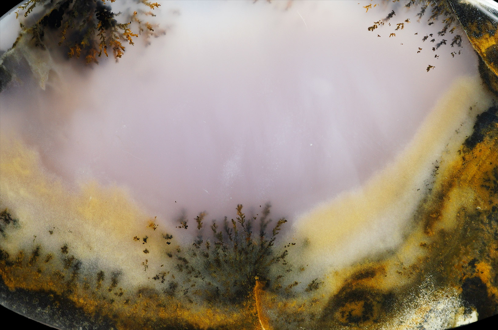 こちらは紫の色合いが珍しく、中心に1本の木のある良い雰囲気の景色のルース(当然染めではなく天然の色合いです)。
